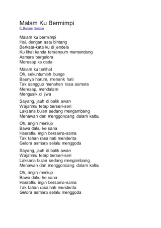 Malam Ku Bermimpi Lirik P Ramlee Saloma Youtube Otosection